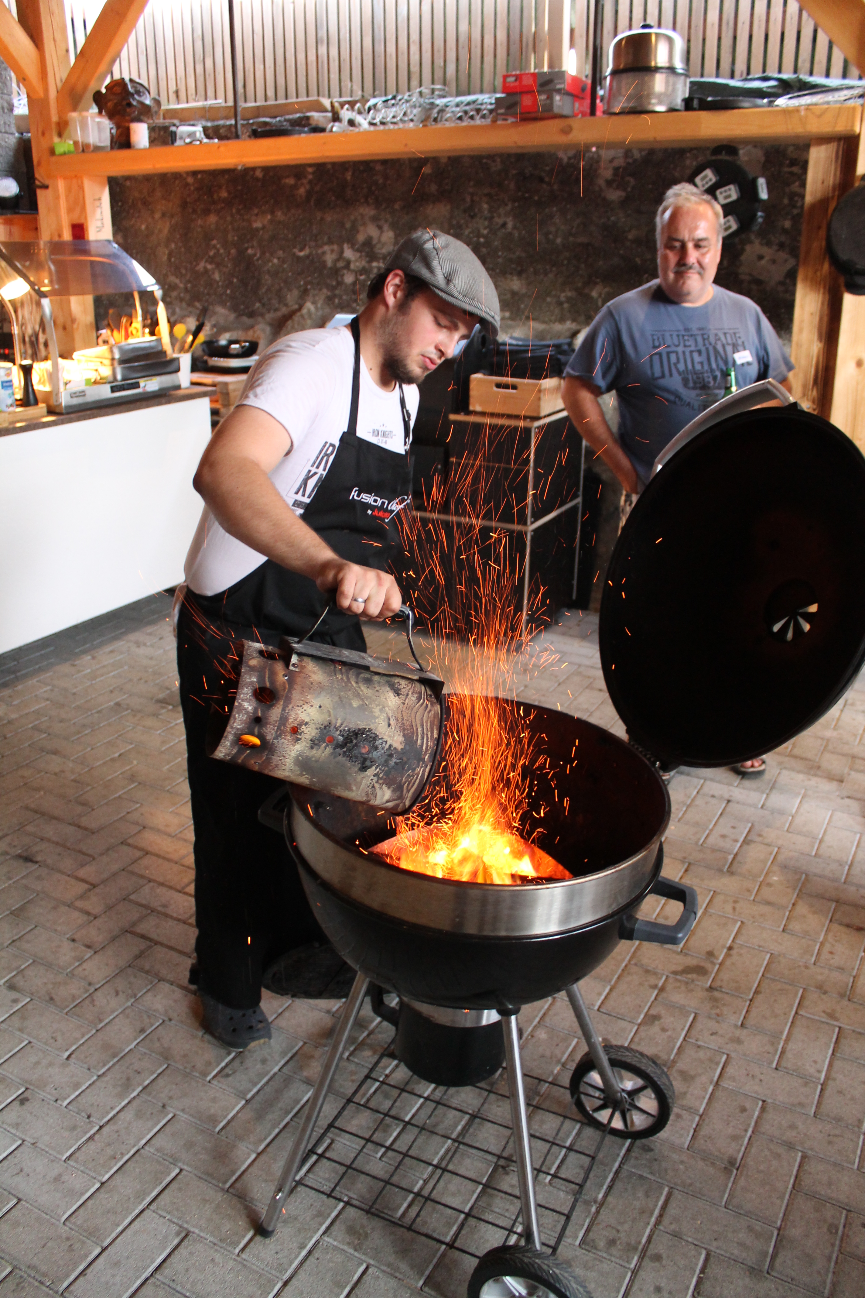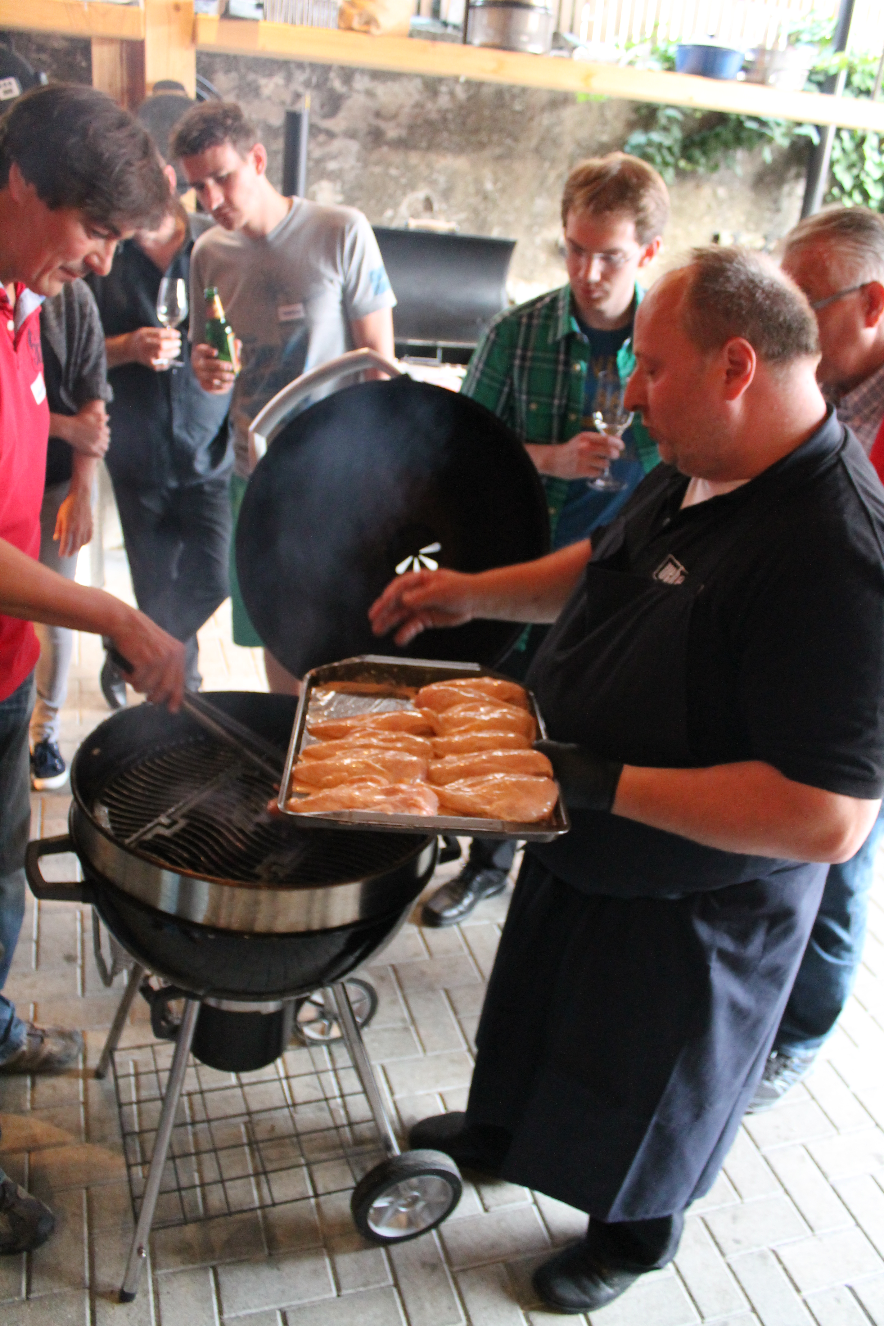 Unglaublich wie saftig und zart eine gegrillte Hendlbrust schmecken kann. Normalerweise verbindet man mit einer Hühnerbrust trockenes zu Tode gegrilltes Fleisch. Frauen essen unglaublich gerne Hühnerfleisch und am liebsten Hendlbrüste. Männer rümpfen bei Hühnerfleisch jedoch meistens die Nase. Nicht beim Grillkurs von Adi Bittermann. Hier waren die männlichen Teilnehmer natürlich auch in der Überzahl, geschmeckt hat ihnen die Kokos-Hendlbrust aber – ich war Augenzeuge 🙂