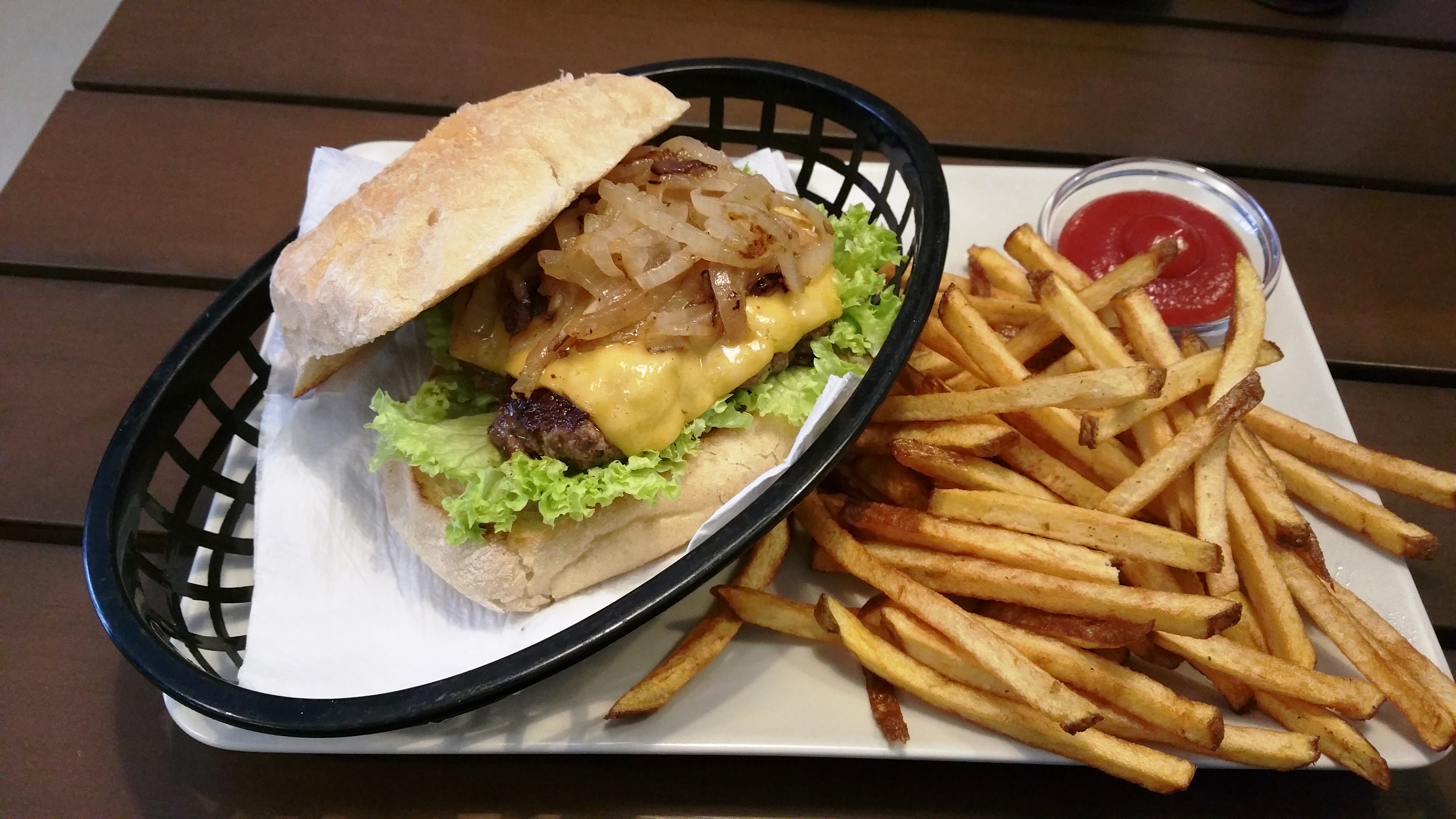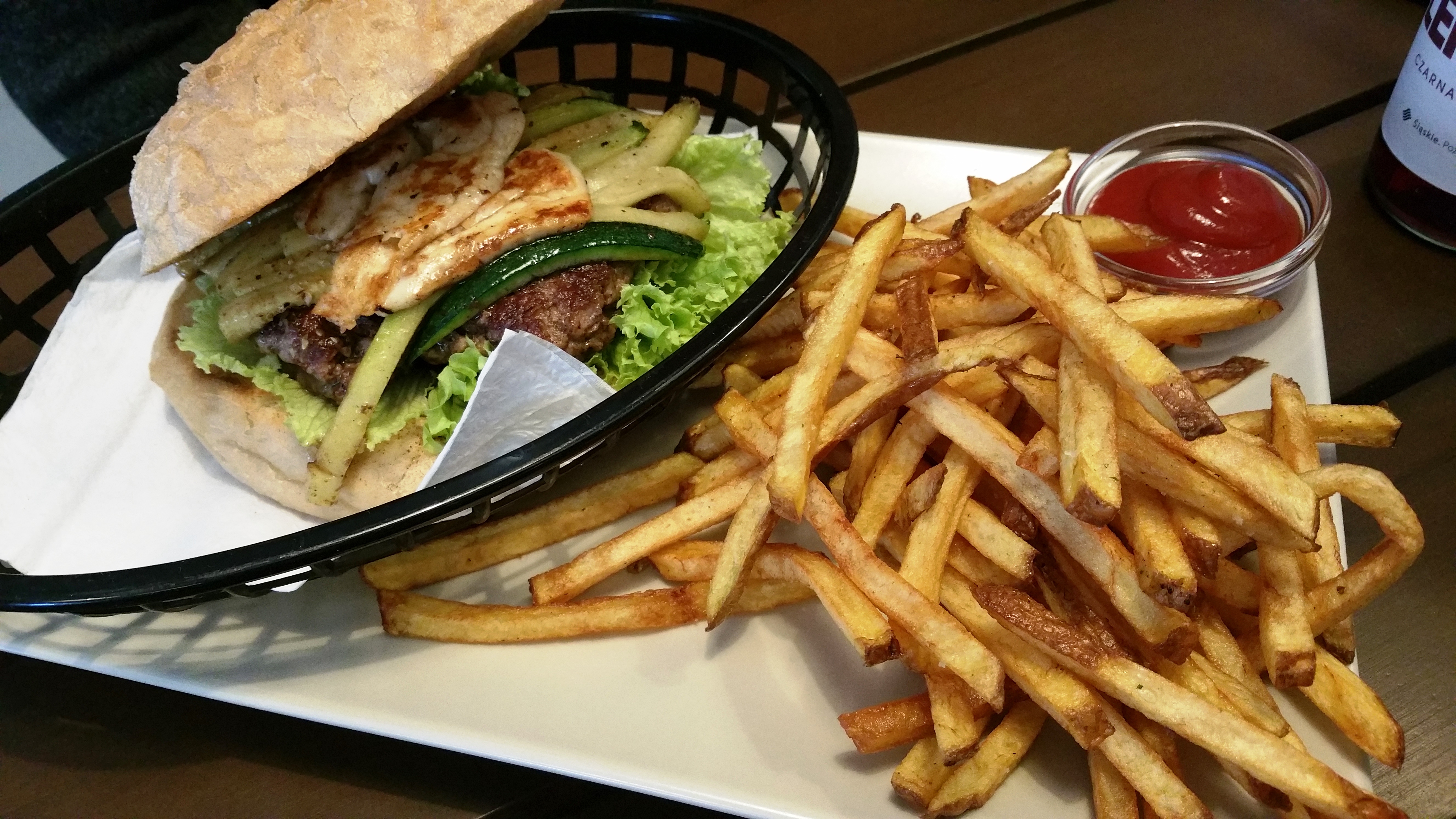 Die Karte liest sich einfach. Es gibt einen Meat-Burger (8,90 Euro) und einen Veggy-Burger (8,50 Euro). Mit diversen Extras können die Burger gepimpt werden (Bacon, Haloumi, Black Onions zu je 80 Cent, Cheddar, Zucchini zu je 70, Jalapeños zu 50 und gegrillten Zwiebeln zu 40 Cent). Insgesamt können 256 Variationen bestellt werden. Als Beilage werden handgemachte Pommes (2,90 Euro) mit diversen Saucen serviert. Insgesamt werden sogar 3 Deals angeboten.
