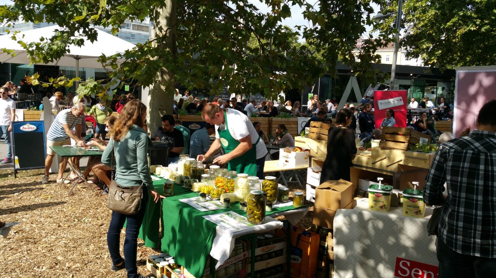 Klassische Würstelstandbeilagen, wie z.B. Salzgurken, Perlzwiebel, Senfgurken, div. Salate, konnte man an einem extra Stand verkosten und erwerben.