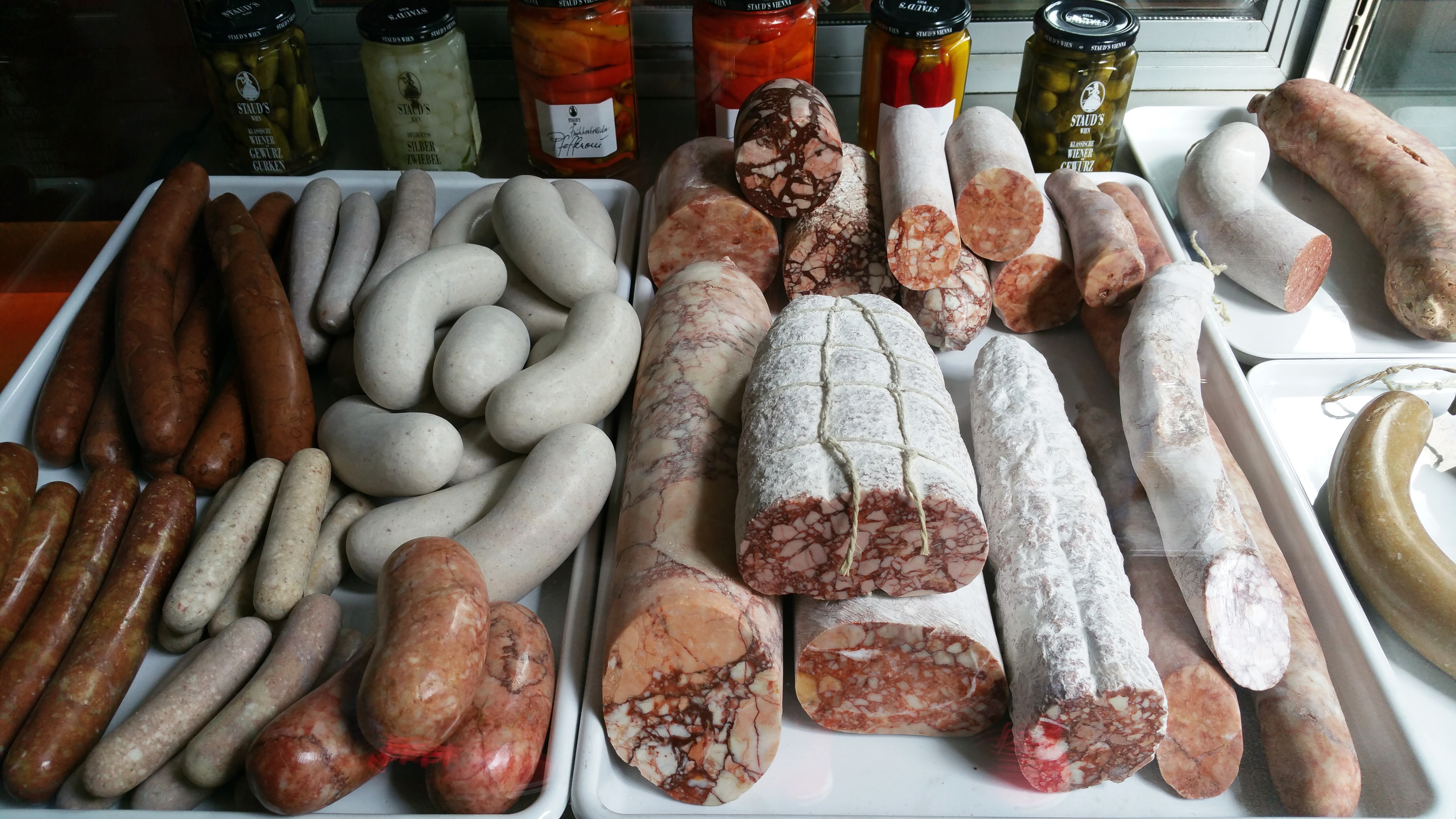 10 Wurstmanufakturen (Hödl, Schober, Ringl, Fischer, Palatin, Dormayer, Gissinger, Britwurst, Thum und Bioviertel) prästentieren ihre Wurstwaren: vom klassischen Frankfurtern, Bratwürstel, Käsekrainer bis hin zur Käsedebreziner, Chiliwurst, Lammbratwurst bis hin zu den geselchten Bratwürsteln, Thai Sai Oua Sausage und Wurst mit Apricot&Blauschimmelkäse. Natürlich darf auch ein defiges Blunzngröstl nicht fehlen. Auch Würstel für die kalte Jause werden sowohl zum Kosten als auch zum Mitnehmen angeboten. Thum hat hier die größte Auswahl, von der Bio-Mangalitza-Blutwurst bis hin zur Wildschwein- und Hirschsalami.