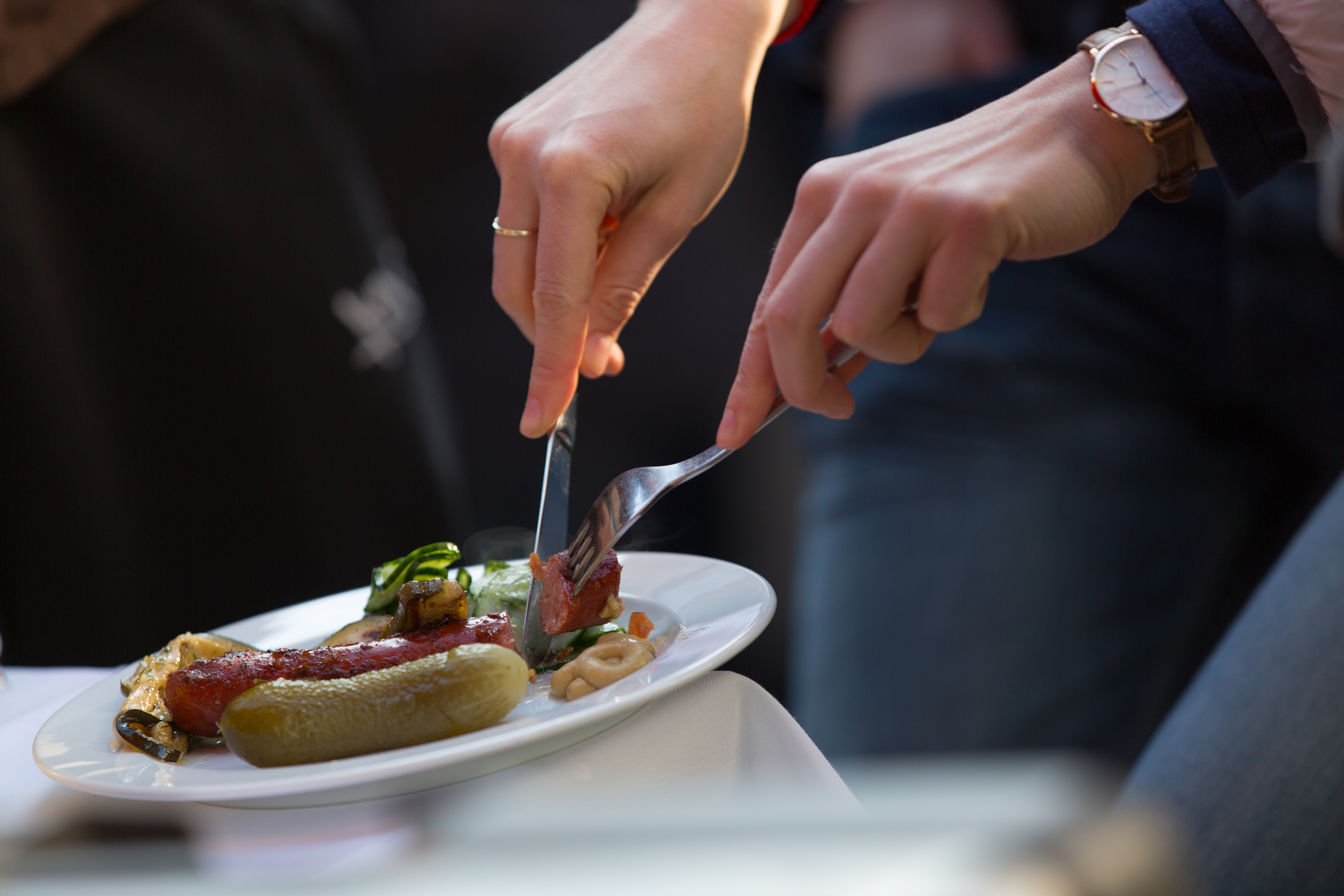 - Die Wurst wird zuerst mit einem so genannten Wurst-Stupfer eingestochen und langsam gebraten.